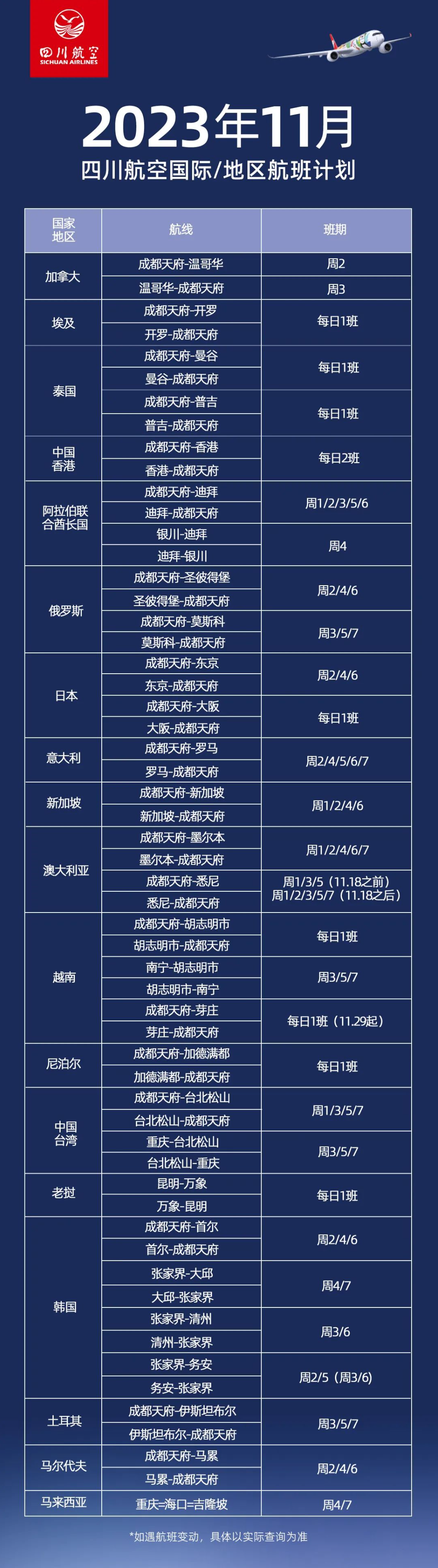 注:以上航班均为当地时间,如遇航班变动,请以实际查询为准。